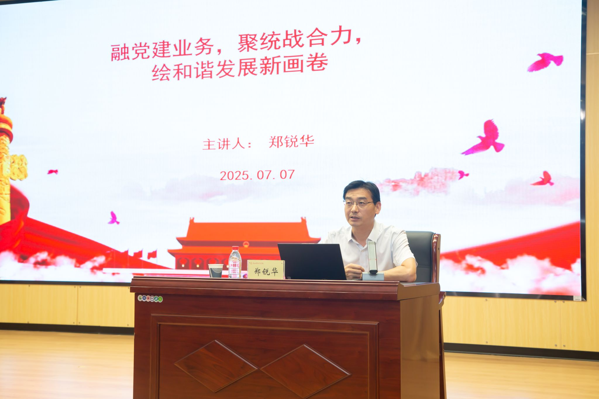 本次培训以全国教育大会精神和教育家精神为引领,聚焦师德师风建设,从思想铸魂、人工智能赋能、心理健康护航,着力提升教师综合素质能力。党委书记张建宽以“铸魂育德守初心”为题,从师德师风建设的战略定位与时代背景入手,深入剖析了师德师风建设的重要意义,详细阐释了师德师风建设的内涵与实践要求,并以典型案例警示全体教职工恪守师德底线、坚守育人初心。