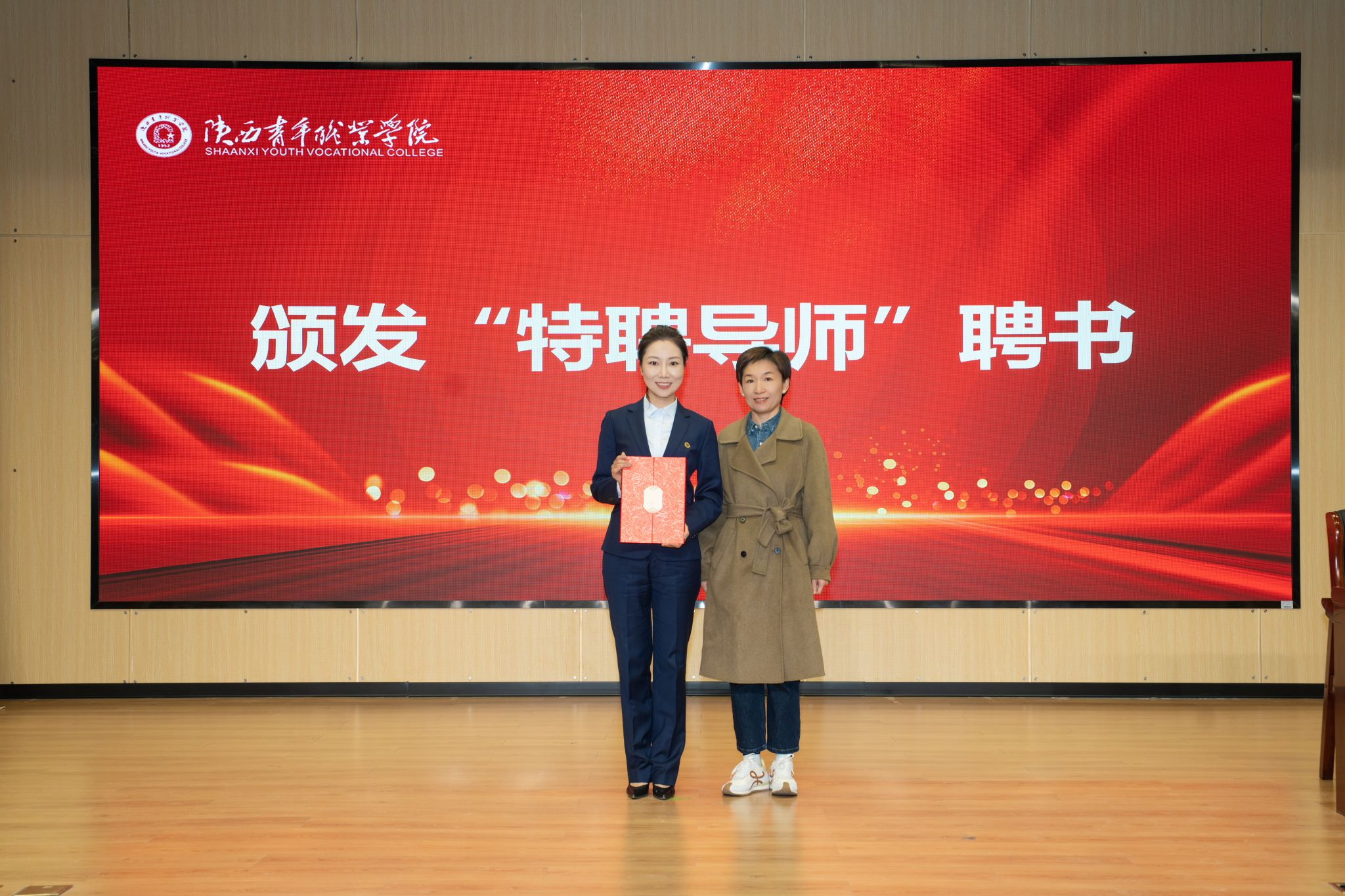 报告会前,梁菀华副书记代表学校聘请党丽娜为陕西青年职业学院“特聘导师”,并颁发聘书。