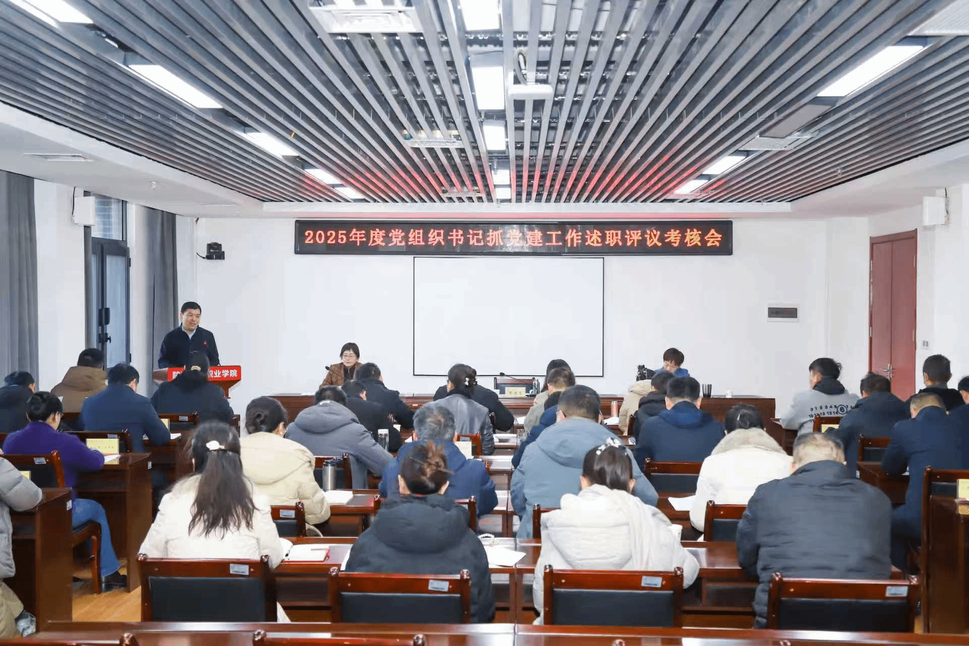 1月9日,学校召开2025年度党组织书记抓党建工作述职评议考核会议。党委书记张建宽作点评讲话,党委副书记梁菀华,党委副书记、纪委书记薛红萍,各党总支、党支部书记参加。会议由梁菀华主持。