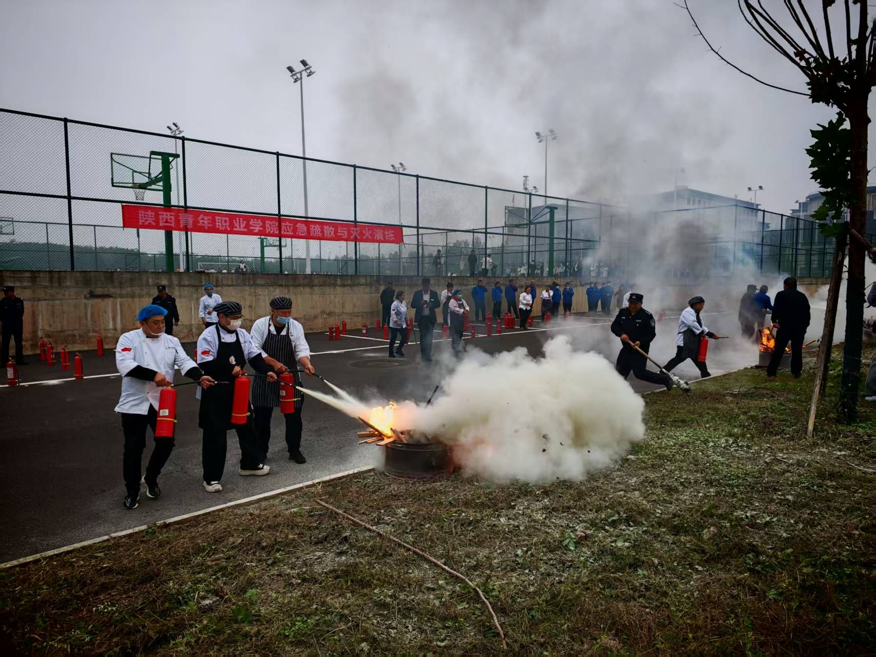 学校开展校内第三方服务人员消防安全知识培训暨灭火演练